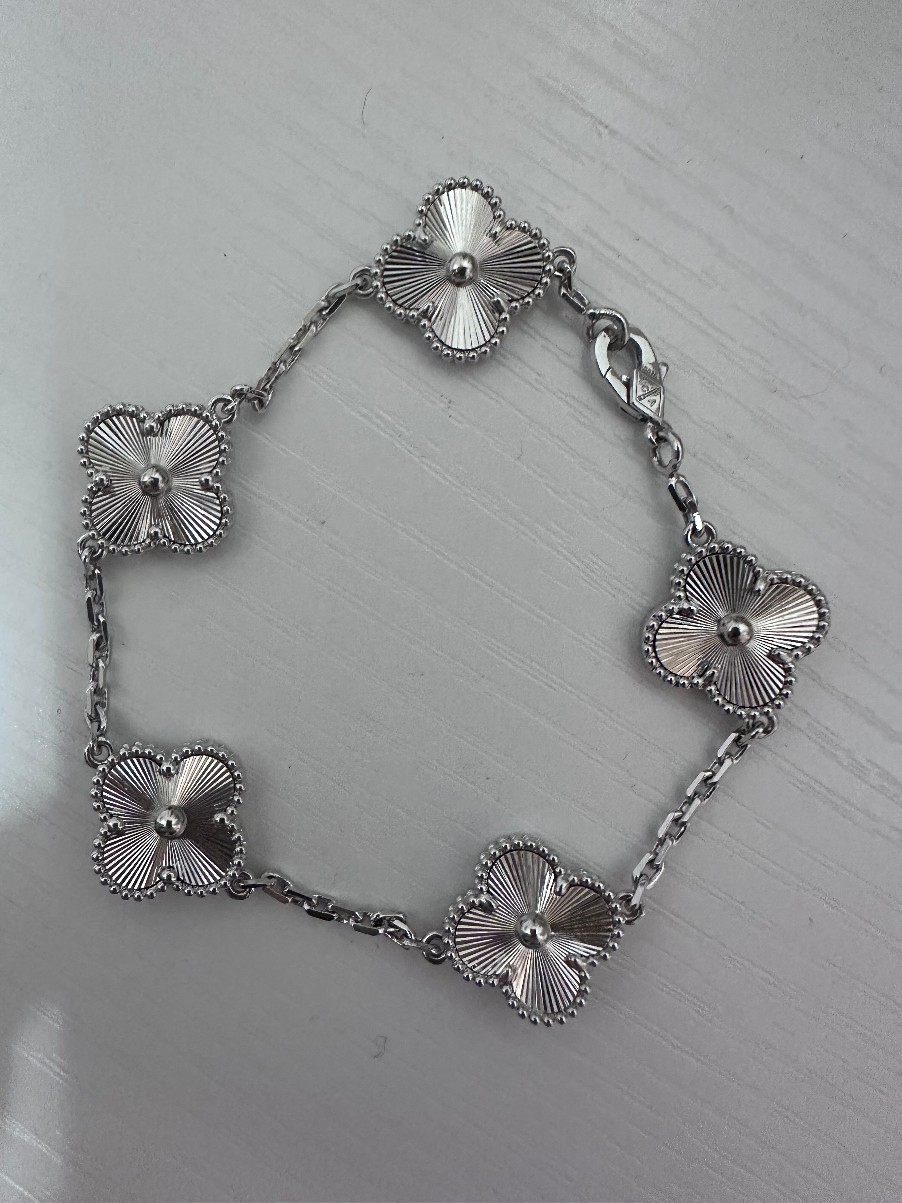 シルバー お花柄 ブレスレットは、あなたの手元を華やかに演出する特別なアイテムです!お花のデザインが施されたシルバーの美しいブレスレットは、日常使いにも特別なシーンにも万能にお使いいただけます。シンプルながら存在感抜群のデザインは、どんなスタイルにもマッチし、あなたのファッションを引き立てることでしょう。自分へのご褒美や大切な方へのプレゼントにも最適な一品です。