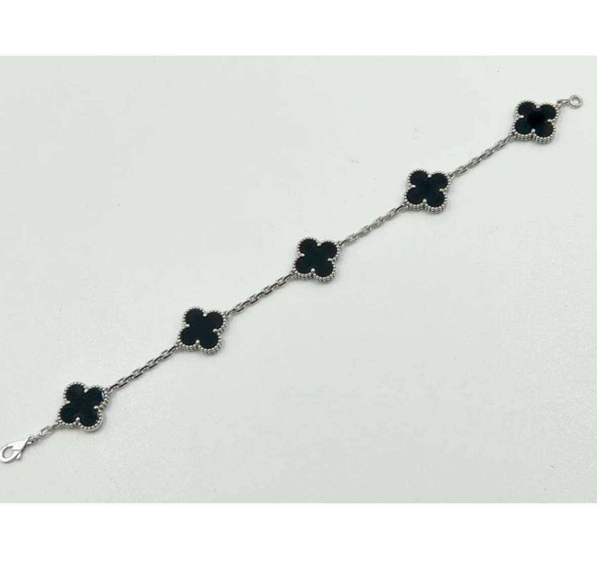 手元に華やかさと洗練された印象を与える特別なアイテムです!美しいオニキスの石が5つ並んだデザインは、エレガントでありながらカジュアルなシーンでも活躍します。シンプルなシルバーとの組み合わせにより、どんなスタイルにも自然に馴染み、あなたのファッションを一層引き立てることでしょう。自分へのご褒美や大切な方へのプレゼントとしても最適な一品です。