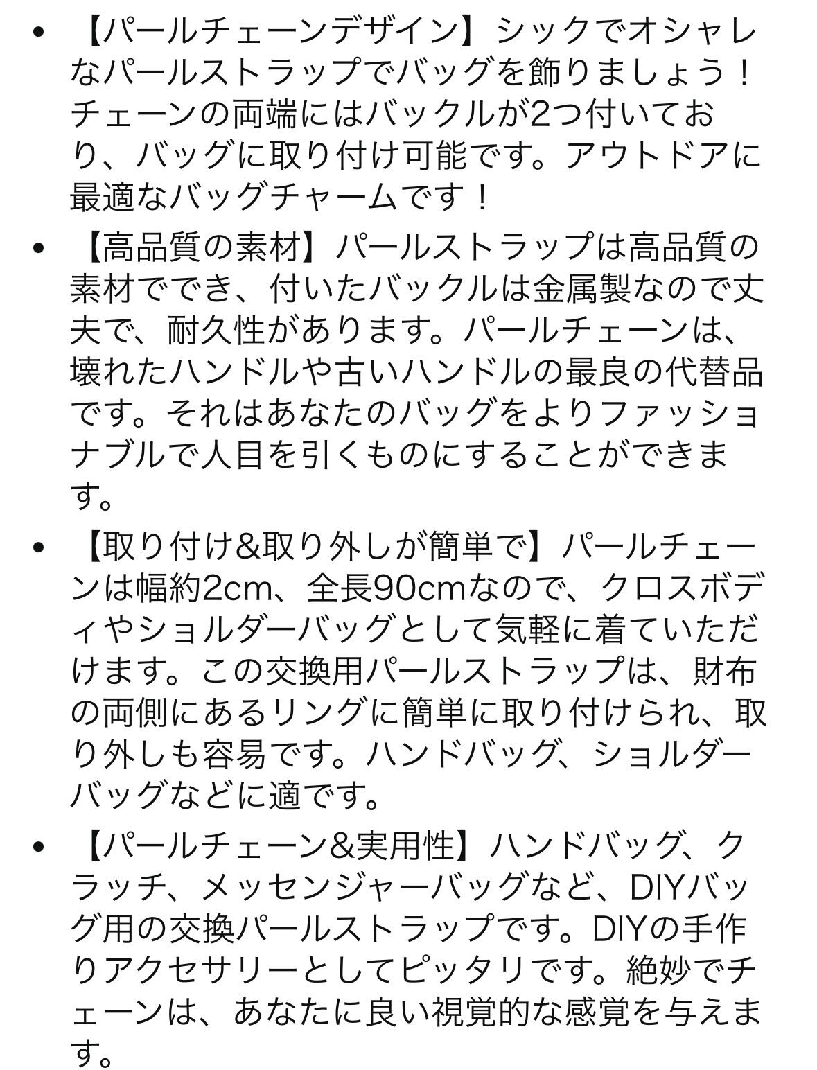 パールストラップ パールロングチェーン バッグチェーン